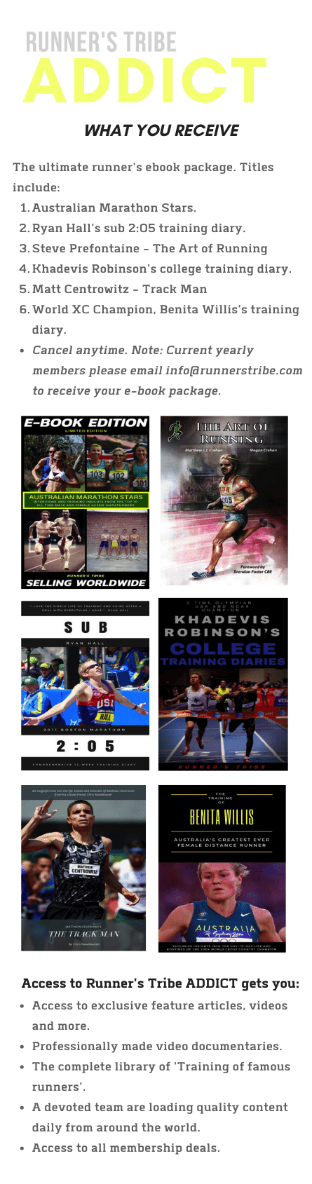 TO VIEW THIS CONTENT PLEASE SIGN-UP TO RUNNER'S TRIBE'S MEMBERS ONLY PREMIUM CONTENT. WE HAVE SOURCED THE WORLD'S TOP WRITERS AND FILM MAKERS TO DELIVER ANY ATHLETE, COACH, PARENT OR FAN THE ULTIMATE PORTAL FOR ATHLETICS EDUCATION, ENJOYMENT AND INSPIRATION.